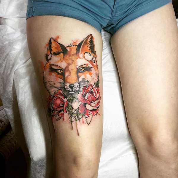 Многие считают, что русские байки и поверья о хитрой лисе берут свои истоки со скандинавских легенд. Основное значение татуировки лиса для девушек – символ коварства, обольстительности и искусительницы. Девушка с подобным изображением на своем теле является запретным плодом в райском саду, предупреждая окружающих о том, что вести себя с ней нужно крайне осторожно. Носительница тату показывает, что она не только хитра и опасна, но и очень умна, при необходимости сможет оставить связавшихся с ней людей в не удел.