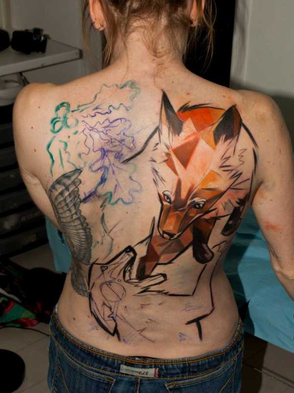Татуировка – способ самовыражения, попытка сделать себя более оригинальным и привлекательным. Большинство людей ограничивает себя классическим набором анималистических татуировок, используя на своем теле изображение тигра, волка или медведя. Но более оригинальным и интересным вариантом станет тату лиса. Сейчас такое изображение редкость, но девушки все чаще используют это привлекательное и хитрое животное для украшения своего тела.