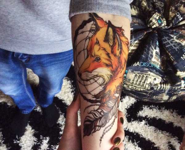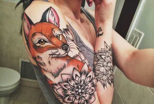 Сразу же стоит отметить, что мужчины подобные татуировки на своем теле не приветствуют и практически не используют, ведь лиса – это женский символ и на теле девушек он встречается гораздо чаще. С помощью этого изображения девушки пытаются всем продемонстрировать свою скрытность и загадочность, ловкость, хитрость и изворотливость ума. В целом, это вполне оправданно и соответствует реалиям. Лиса – это не слишком агрессивное, но, тем не менее, хищное животное, способное драться до смерти. Девушки часто используют такое изображение, подтверждая свою любовь к детям, ведь лиса стоит на смерть, ограждая свое потомство от опасности или гибели.