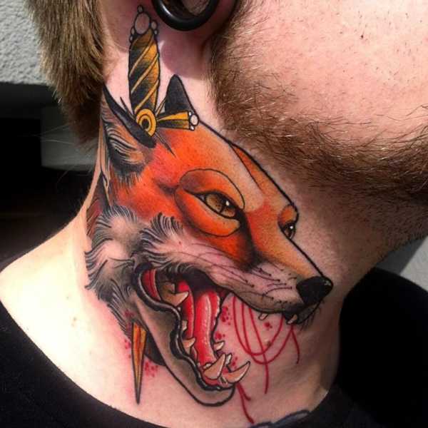 Морда лисы на женском теле символизирует хитрость и коварство девушки, может носить как абстрактный, так и предупреждающий характер. Также подобное изображение может использоваться в качестве защитной реакции, оставаясь на виду у прохожих, которых оно может отпугнуть от владелицы тату. Большинство девушек этим тату намекают на свою неординарность, способность обвести вокруг пальца своего обидчика, преподнеся ему неприятный сюрприз.