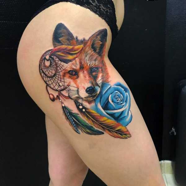 У скандинавов лиса считалась священным животным коварного бога Локи, поэтому люди наделили ее особой энергетикой. Тату лисы на бедро и другие участки тела наносили прорицатели, маги и знахари. Кельты использовали такой рисунок в качестве оберега от различных проблем и опасностей. Еще он является отображением мудрости и чести. Многие народы верили, что тату маленькой или большой лисы позволяет человеку попасть в загробный мир. В Древнем Риме лиса ассоциировалась с демоном огня, который послан из ада. Подобные татуировки выбирали для себя только люди, занимающиеся черной магией. Древние египтяне также негативно относились к лисице, считая ее символом распущенности, лицемерия и порока. Был в Египте еще один вариант тату – божок Толок в образе лисички фенек. Его считали посредником между небом и землей.