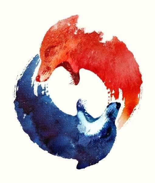 Животное может изображено не только самостоятельно, но и в дополнении с другими элементами, зачастую это другие животные или птицы. Оригинальным вариантом станет изображение ворона и лисицы, а настоящим шедевром станет тату волка и лисицы – символ серого льда и рыжего пламя.