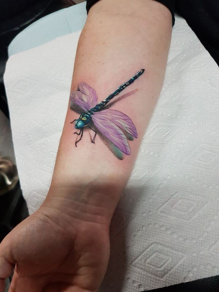 Часто предлагают сделать татуировку стрекозы на ноге, спине, в плечевой зоне или забить рукав. Небольшие татуировки по желанию располагаются по всему телу. Можно сделать выбор в пользу стрекозы на запястье, плече или предплечье. На ноге стрекоза выигрышно выглядит в зоне ступней или на бедренной поверхности.