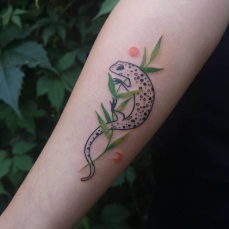 Нательные изображения с ящерицами бывают в разных цветах и одинаково эффектно выглядят как на мужских, так и на женских телах.