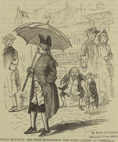 Еще через несколько десятилетий зонт в Европе стал применяться для защиты от дождя. Известно, что в один из ненастных дней 1750 года английский путешественник Джонас Хенвей вышел на улицу с зонтом, чем жутко насмешил окружающих, – ведь с этими предметами тогда ходили в основном дамы, и совсем не в такую погоду. В итоге Хенвей грустно заметил: