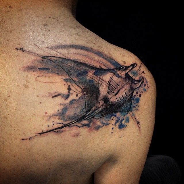 Скат со смесью японских и акварельных черт от @tseg_tatts через Instagram