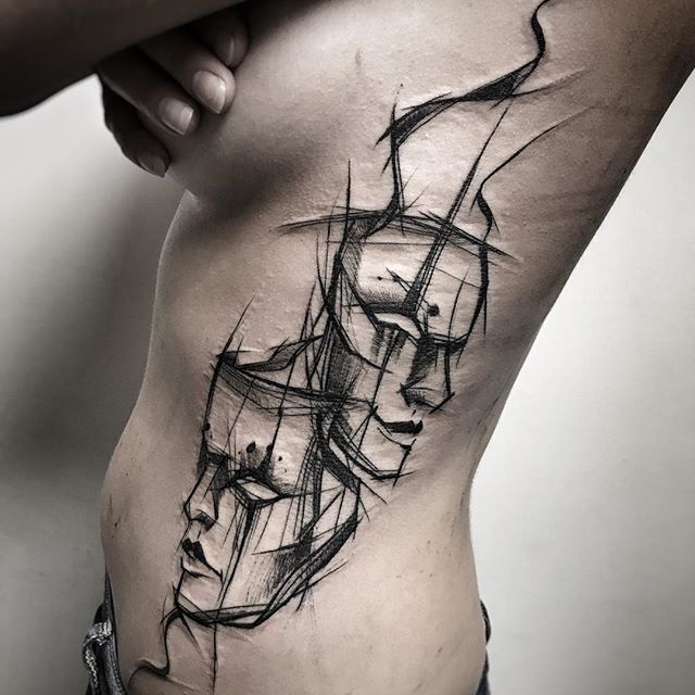 Таким образом, тату в «Скетч» имеет 2 направления: своего рода набросок, незавершенный рисунок и изображение действия, которое когда-то могло происходить в жизни человека, запечатлевшего его на своем теле.
