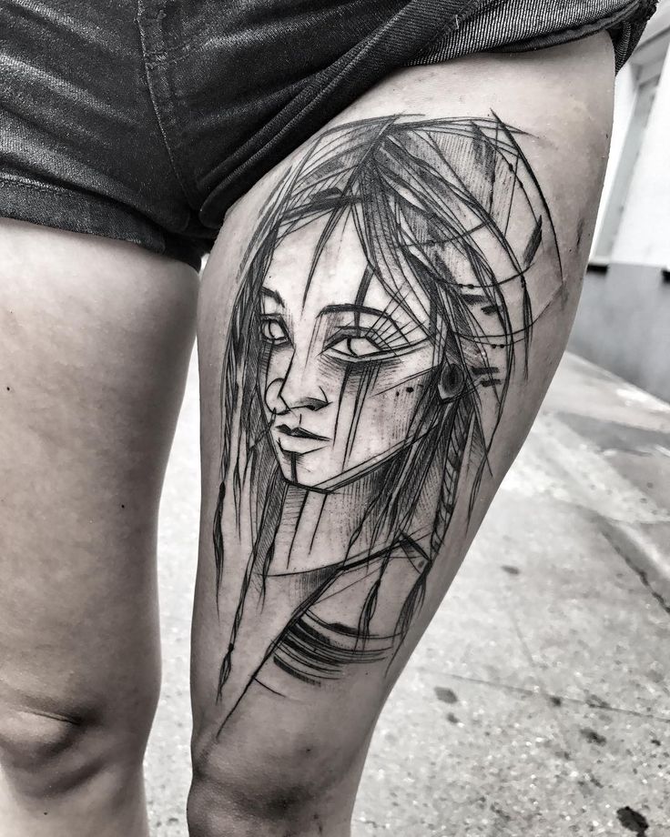 Тату в «Скетч» напоминают карандашные наброски, выполненные на бумаге. В руках опытных мастеров они приобретают необходимую художественность и изящество. Особенно такой стиль подходит для изображения людей и животных. Тонкие линии и переплетения штрихов выглядят в этих изображениях максимально гармонично.