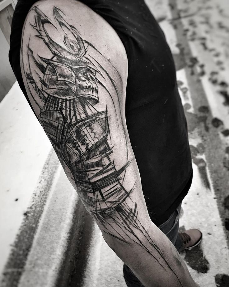 - Большой размер (например, на руку обычно делается как рукав, на котором может быть изображен волк или отважный самурай, искусно вписанный в цветочный или кельтский орнамент).