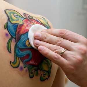 Тщательно промойте татуировку теплой водой с мылом (рекомендуются мыло и гели для душа без сильных отдушек)