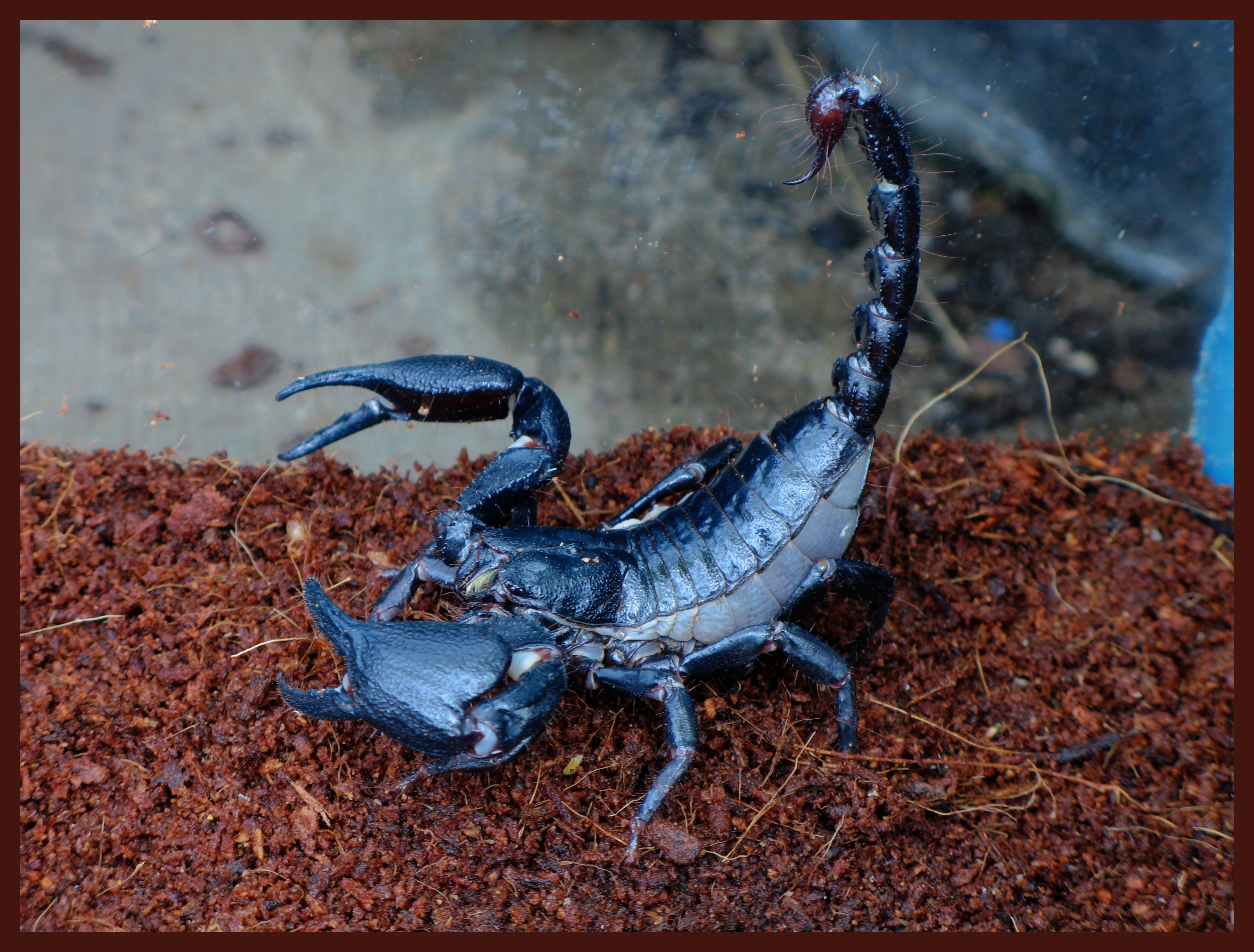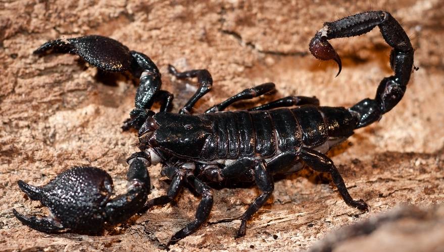 Танзанийский скорпион с красными когтями очень похож на скорпиона-императора, но он немного более агрессивен. Они также демонстрируют готовность ужалить.Их черное тело и красная челюсть делают их агрессивными, но они меньше, чем императорские скорпионы. Они примерно 9-12,5 см. Они родом из Танзании и, как правило, прячутся под камнями или упавшими бревнами, иногда даже в норах. Их укус не смертельный, как укус пчелы, и их фирменный стиль нападения на добычу – когтями.