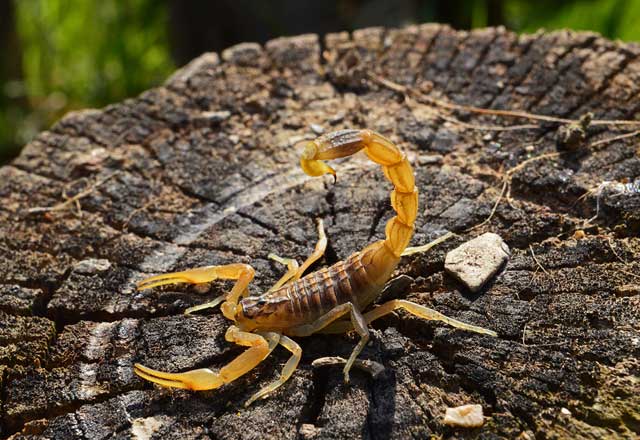 Большинство скорпионов прячутся под бревнами, камнями, досками и беспорядком.Некоторые, такие как кора скорпиона, покоятся на вертикальных поверхностях, таких как деревья, кусты и стены.