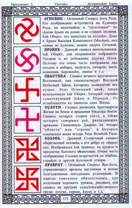 Не совсем правильно объединять все свастичные символы под одним названием свастика, ведь каждый из знаков имеет свое особое значение. Рисунки свастичных знаков символизировали движение бога солнца по небу, поэтому их часто использовали в качестве амулетов.