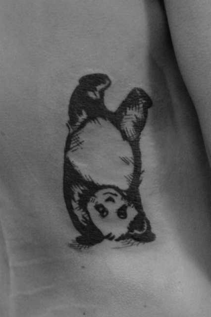 С юмором подчеркивает сомнения и некоторую робость, присущую обладательнице татуировки.