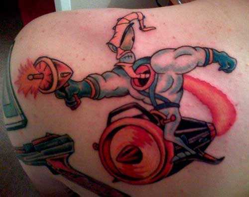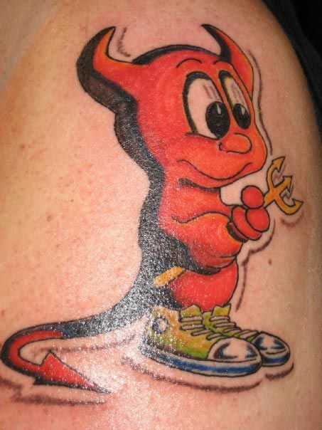 Смешные тату получили широкую популярность среди подростков и молодежи. Забавные рисунки наносят на разные части тела. Они выступают отдельными изображениями или составляют композицию с многочисленными персонажами.
