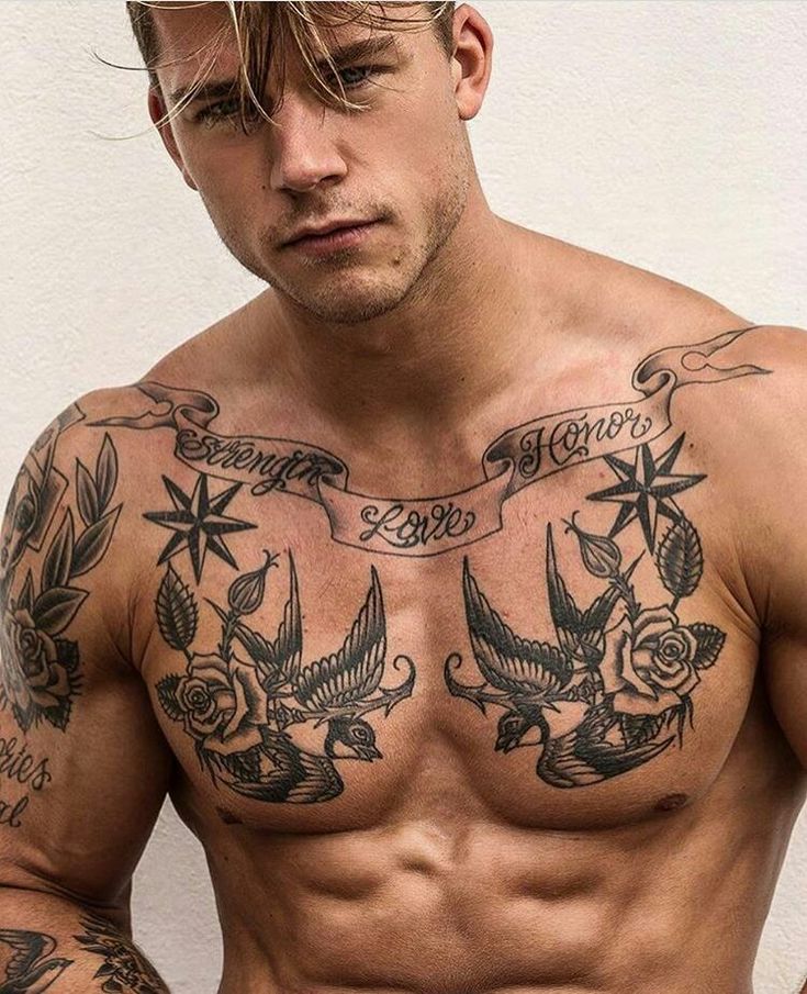 Певец добавляет татуировку «Сын Божий» под грудной клеткой.