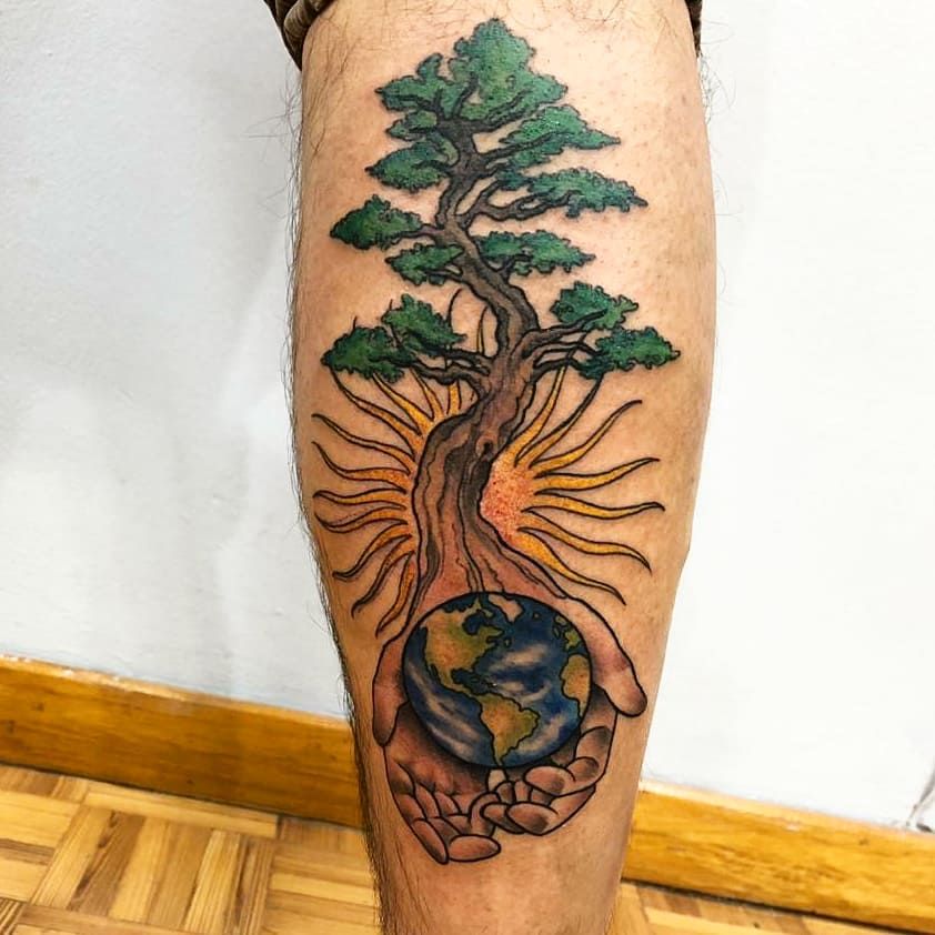Такое тату с ветвями, корнями, очень элегантно смотрится на любой части тела. Также деревья это огромная важная часть нашей планеты, люди которые, делают тату с изображением дерева, также хотят подчеркнуть свою связь с человечеством, связь каждого человека друг с другом и большую ответственность за происходящее на земле, особенно за состояние природы. Изображение сосны также имеет древние мифологические смыслы, считается что дерево – это некое заключение дракона, его силы и необыкновенного физического ресурса. Поэтому тату с сосной – это ещё и прекрасные силовые качества. Тату с изображением с сосной может быть от маленьких размеров до очень больших. В подборе картинки, сюжета, размера вам обязательно поможет профессиональный мастер тату.