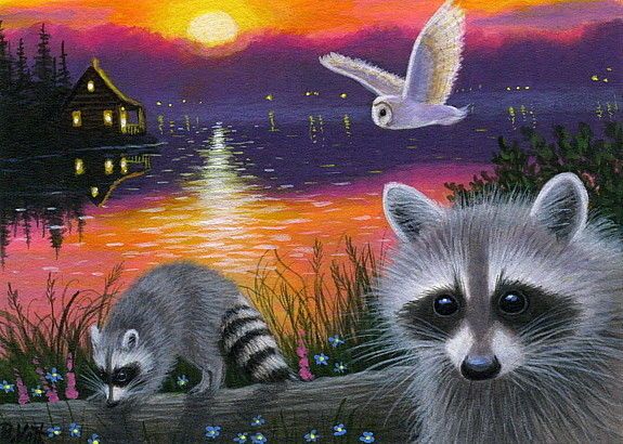 - сова, Енот, птица на прозрачном фоне поделился с .
