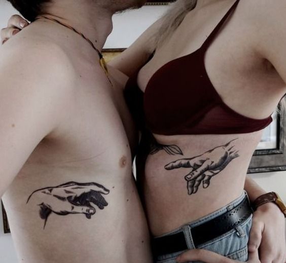 Уникальность этой татуировки заключается в расположении букв ЛЮБОВЬ. Они расположены так, что когда пара берется за руки, это завершает слово, точно так же, как ваша любовь имеет значение, когда вы оба вместе.