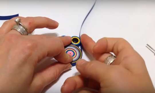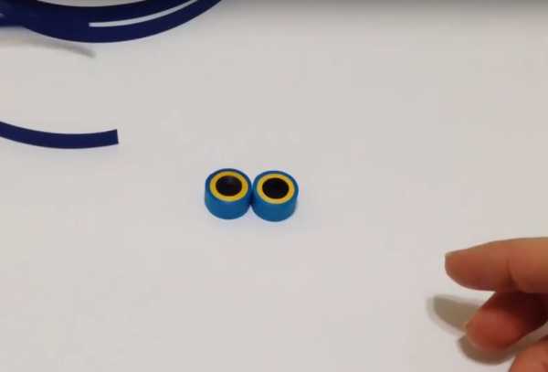 Из трёх разных скрутите плотные заготовочки — глаза. Чтобы облегчить задачу, склейте сразу один длинный.