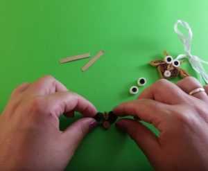 Очередь за глазками. Их мы приклеиваем на верхнюю часть образовавшегося носика.