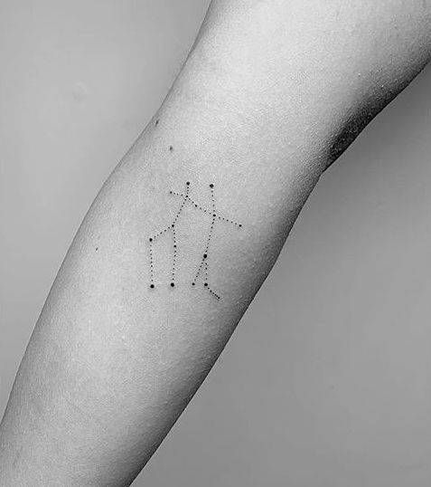 Татуировка созвездия не’не обязательно полностью доминировать над вашей рукой, если вы’не хотите, чтобы. Эта нежная татуировка Близнецов на запястье является доказательством того, что простота просто работает.