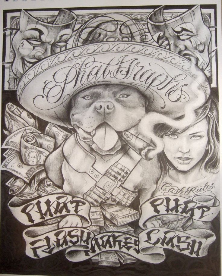 Довольно большое значение в этом искусстве имеют надписи в стиле Чикано. Все они имеют определенный смысл и предназначение. Как правило, на тело наносятся важные даты, цитаты и высказывания замечательных людей.