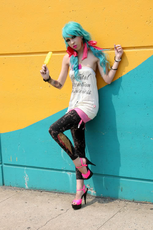 - Отрицание правил. Пожалуй, это основной девиз треша. Когда в моде макси-юбки, девушки-треш носят мини, когда весь мир без ума от брюк, треши надевают юбки и платья.