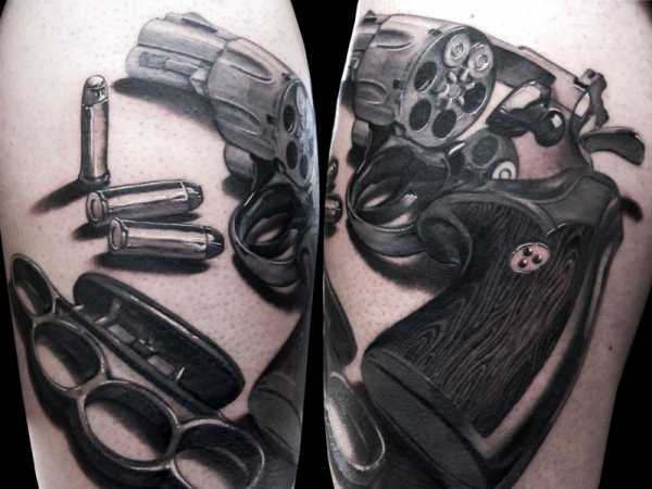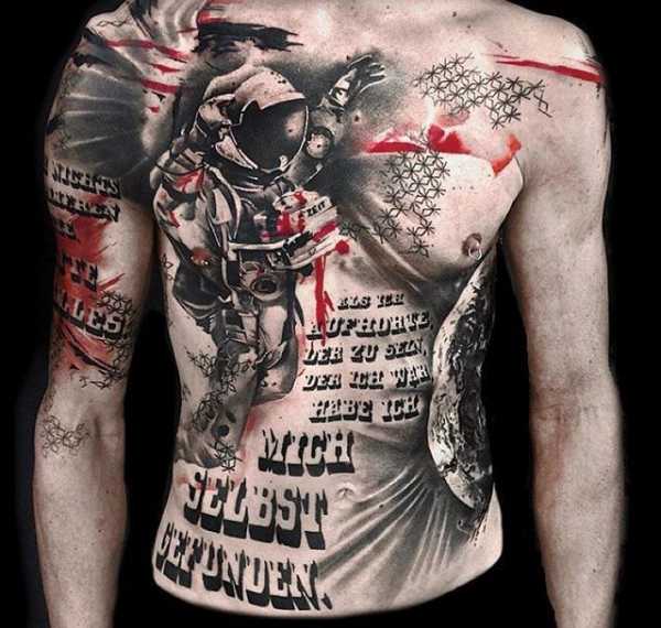 Как и в живописи, так и в тату: реализм — самая сложная и трудоемкая техника. Нанести на кожу цветное (или в гамме black&grey) изображение, передающее глубину, объем, светотени и прочее, или добиться полного сходства с портретом — это еще труднее, чем писать красками по холсту. Никто не набьет такое украшение за один сеанс. Это — дорогая “овчинка“. Но она стоит выделки. Ведь в итоге будешь “носить“ на себе хоть репродукцию Микеланджело. А стиль реализма в мире тату, похоже, никогда не утратит актуальности. Сегодня его часто называют “3-D“, что не совсем правильно. Татуировка в 3-D, создающая полную иллюзию трехмерности — лишь одно из направлений реализма.