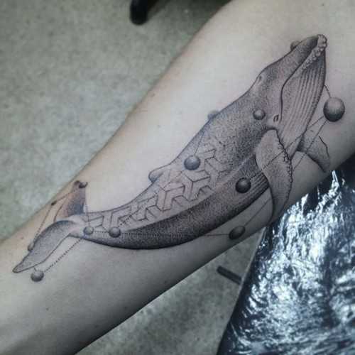 Dot work тату – стиль, которому присущи сложные геометрические формы. Здесь рисунок наносится точечным методом.