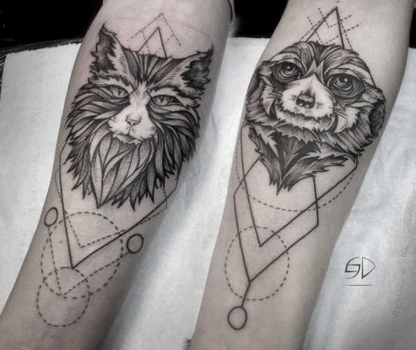 Тату в стиле Дотворк состоят из мелких точек, напоминающих пиксели. Дотворк позволяет хорошо передать тени, положение света, переходы. Направление охватывает все популярные объекты (цветы, узоры, портреты и прочее), считается универсальным. Чаще всего используются черно-белые варианты.