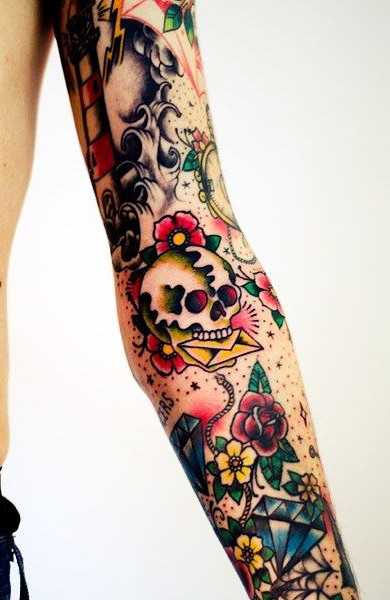 Олд скул — классика жанра. То, что всегда было, есть и будет. Ибо все это — наши мечты, вынесенные из детства: о далеких мирах, о бесценных дарах, о прекрасных женщинах и отважных мужчинах… Тату в стиле олд скул всегда немного наивны. Толстые контуры и яркие краски напоминают о детских рисунках, а тематика — о мультфильмах. Розы и сердца, карты и пистолеты, якоря, штурвалы и прочее из морской темы — “йо-хо-хо, и бутылка рома!“, коты, совушки, гордый орел, имя бойфренда на розовом бантике — это все здесь. Олд скул не стремится к реалистичности, но при этом не теряет своей притягательности. Искренность и выразительность обеспечивают ему места в хит-парадах уже почти 200 лет.