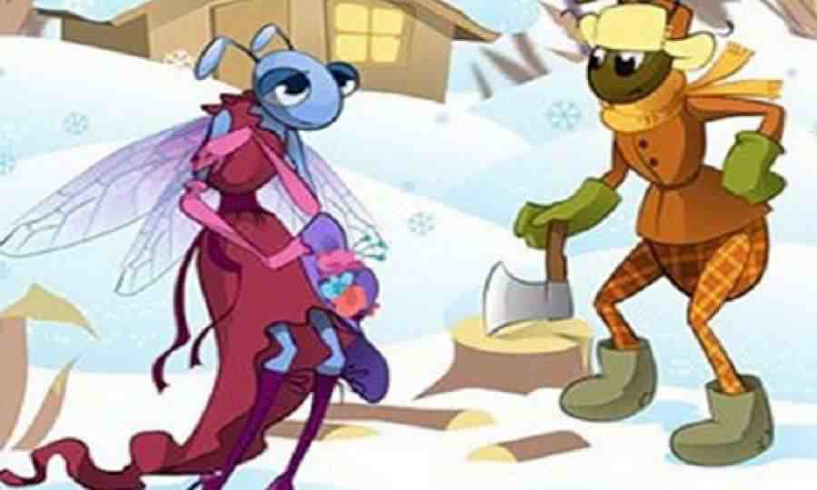 Стрекоза русского баснописца легкомысленна и недальновидна, а муравей, как обычно, трудолюбив и мудр. Прогулявшись все лето, стрекоза с приходом холодных дней вдруг понимает, что ей негде спрятаться и нечего есть.