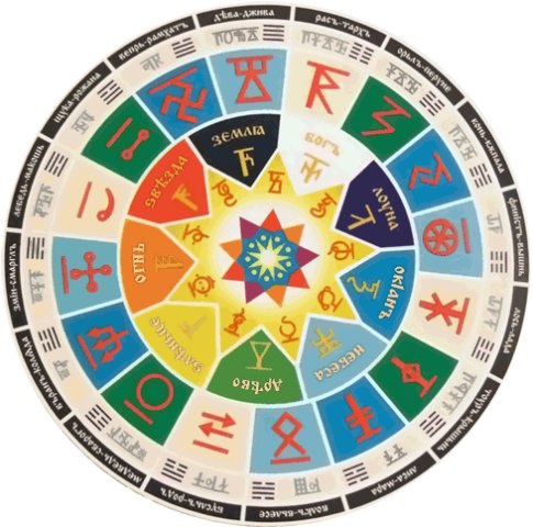 Коло Нави — Черную ночью, темною ночью, когда ни звезды не блещут, ни луна не светит, Солнце Ясное за горизонтом томится, поднимается Навье Солнце, Черное Солнце, Солнце Полуночное. Светит то Солнце в мире подземном, преисподнюю землю освещает, палит глаза блуждающим духам и гадам подземным, жарит нечисть поганую. Ярко то Солнце, но не людям свет его и не зверям, а колдунам древним, ведуньям опытным. Озаряет то Солнце путь-дорогу дальнюю к мудрости, светочем на пути является алчущим знаний, что по пути Нави ступить не боятся, порог темный перешагивают да в ночь уходят. Сохраняет Навье Солнце будто детей своих мудрецов и жрецов, ведьм и колдунов. Помощникам является храбрецам, что соль знаний вкусить не боятся. Помогает Черное Солнце своим путникам, тайны открывает, по пути знаний проводит. Символы Навьего Солнца, ярги-свастики закрученные противосолонь (против часовой стрелки). Свастики такого вида символизируют обратный ход вещей, прошлое, подземный мир и исцеление, они обращены к нижнему миру. Помогают в работе с энергией, чакрами (особенно нижними до анахаты), выходами в астрал и осознанными сновидениями. Все работа с подсознанием, все колдовство и магия, все неизведанное находится в ведении существ Нижнего Мира. Подойдет всем тем, кто занимается различного рода энергетическими практиками (в т.ч. бесконтактным боем), целителям, врачам, людям с высокой психологической нагрузкой.