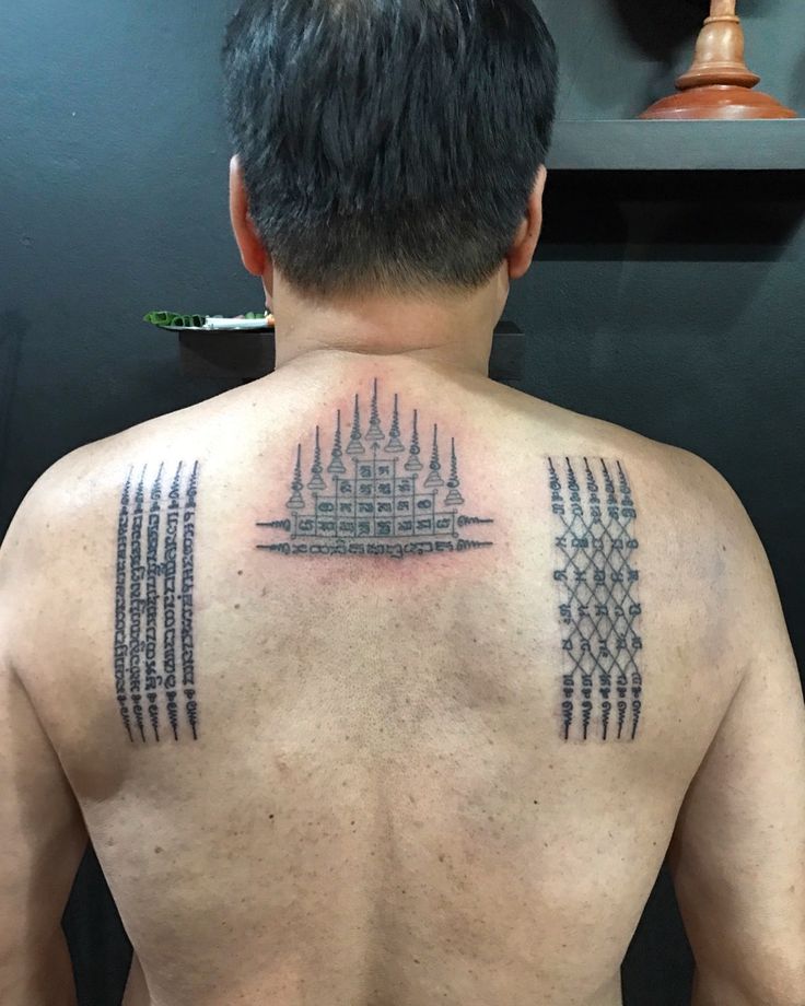 Тайская татуировка Сак Янт делалась в древние времена воинам, которые хотели защитить себя от смертельных ран и поражения в бою. Рисунок после нанесения на кожу заговаривал шаман, чтобы магическая сила не покидала человека никогда.