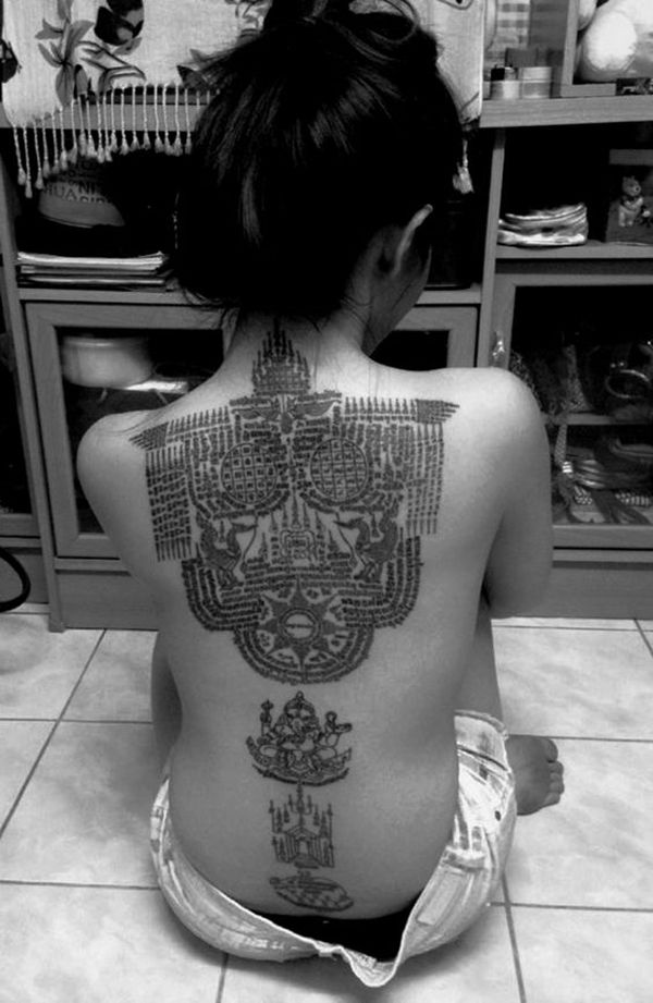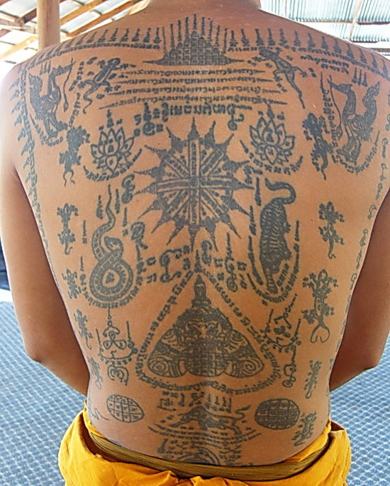 Тайские татуировки Сак могут сделать только монахи. Они владеют тайной чтения знаков и составления смысловых конструкций для передачи определенных знаний и связи с Высшими Силами.