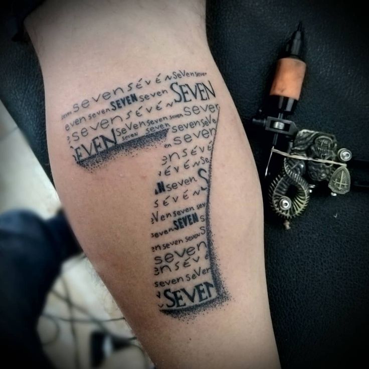 Некоторым людям нравится иметь цифру «7» в качестве татуировки или слово «Семь». Некоторые даже объединят их, создав слово «Se7en», которое стало популярным благодаря психологическому триллеру Дэвида Финчера 1995 года с Брэдом Питтом, Морганом Фрименом и Кевином Спейси в главных ролях, основанном на серии убийств, вдохновленных семью смертными грехами.