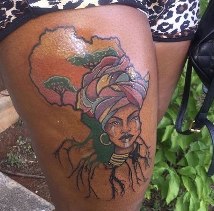 30. Вот реалистичная татуировка африканской девушки на бедре этого мальчика.