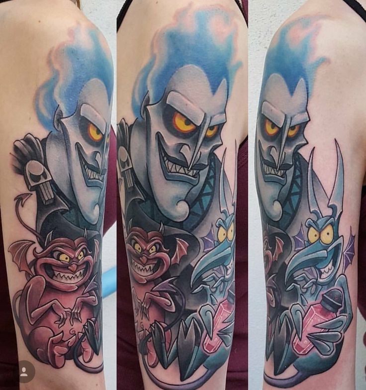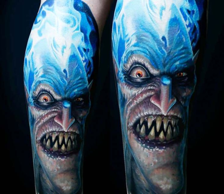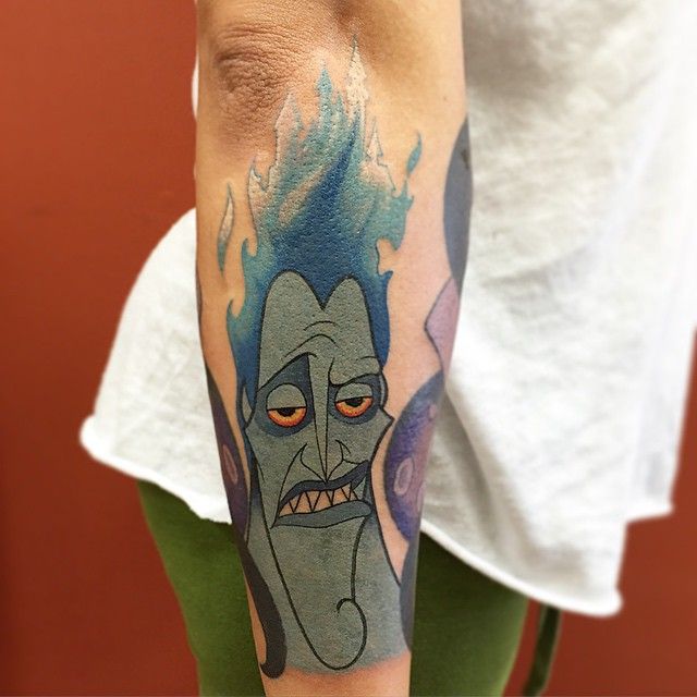 @tiggytattoos через InstagramНаконец-то незабываемый злодей, которого мы все любим! С раздраженным видом художник отдает должное Аиду нашего детства. Голубая роза дополняет Аид и объединяет дизайн. Кроме того, эта татуировка излучает ярко-синие, черные и фиолетовые чернила, которые будут выделяться, где бы вы ее ни разместили.