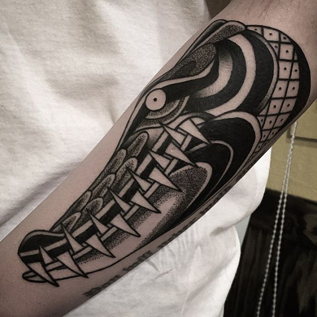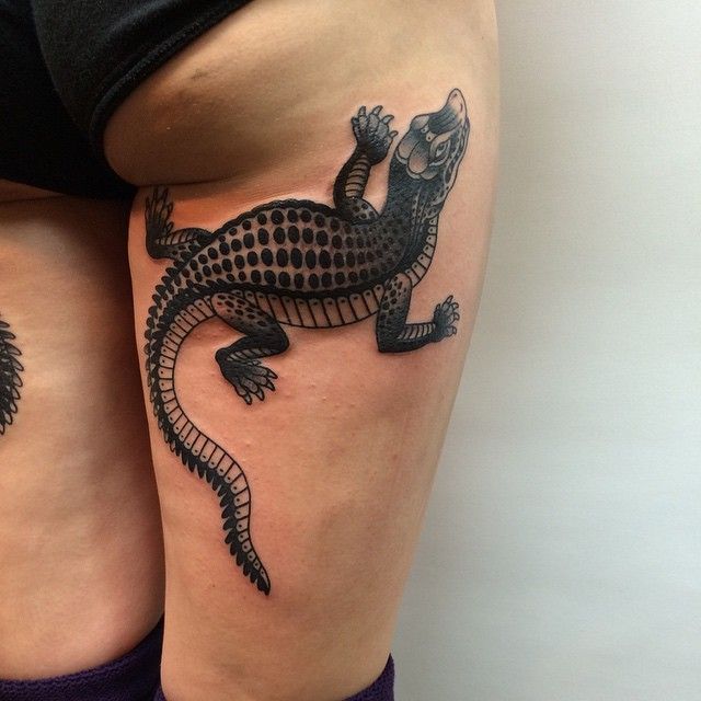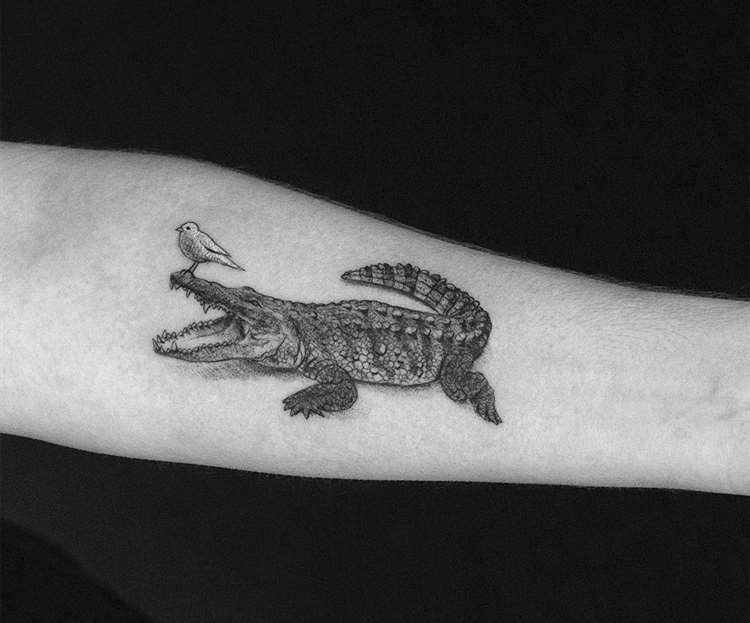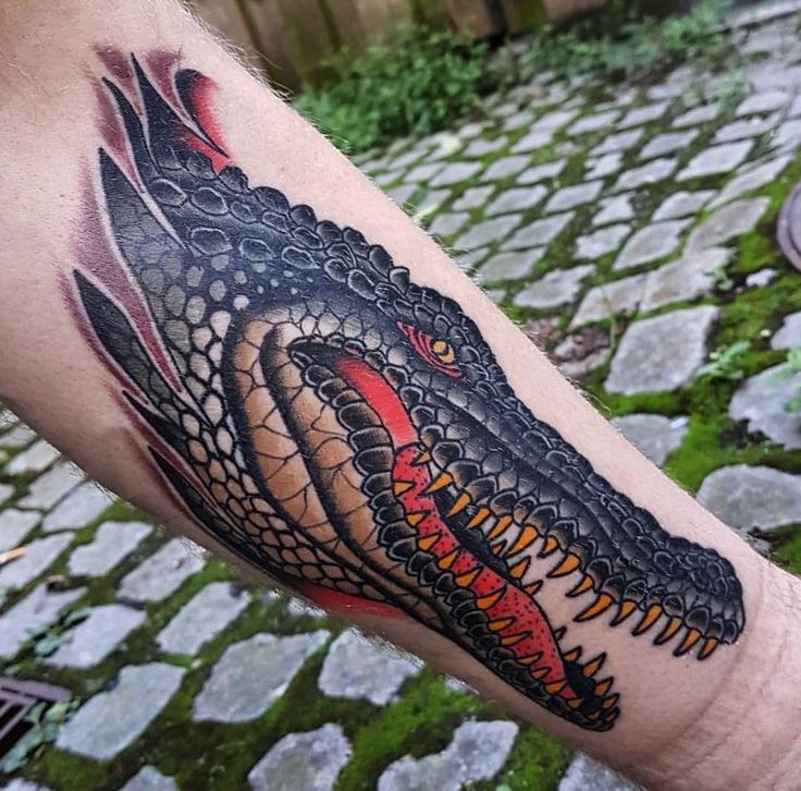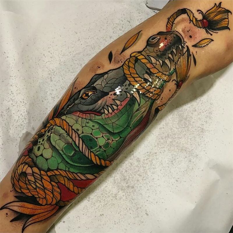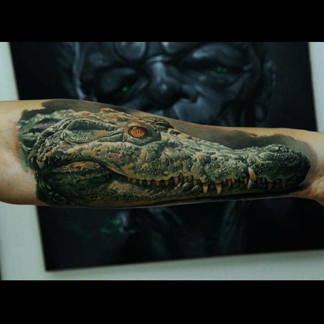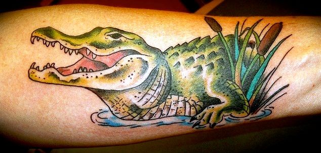 Аллигатор и крокодиловые тату бывают разных цветов и размеров.