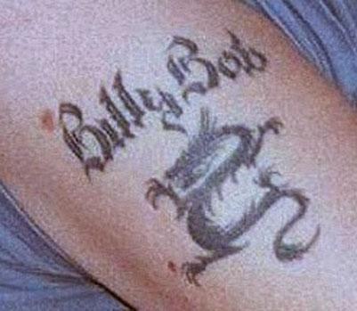 Татуировка „Билли Боб“ была одной из ее первых татуировок. Этот черно-белый рисунок был выполнен в форме китайского дракона с именем ее бывшего мужа, „Билли Боб“ Торнтон, начертанным сверху. После развода она сделала сверху новый дизайн с географическими координатами.