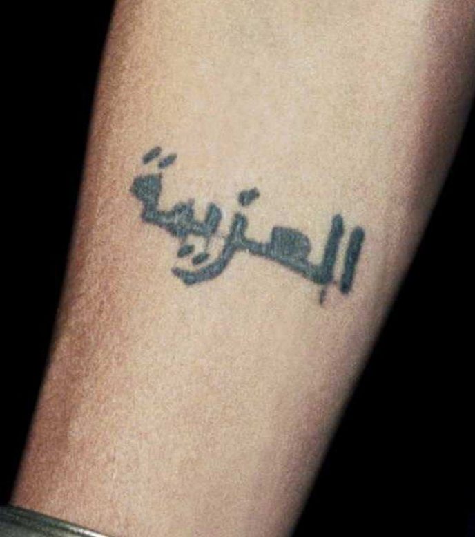 На правой руке можно увидеть тату-символ на арабском, означающий «решительность».