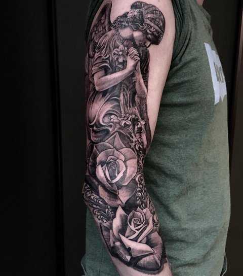 Они ассоциируют тату с религией, безопасностью, охраной. Набивают рисунок на грудь, плечо, предплечье. На лопатках зачастую встречаются ангелы-хранители. Крылья ангела на спине обозначают доброта, мощь, подготовленность неизменно охранять свою избранницу и семью.