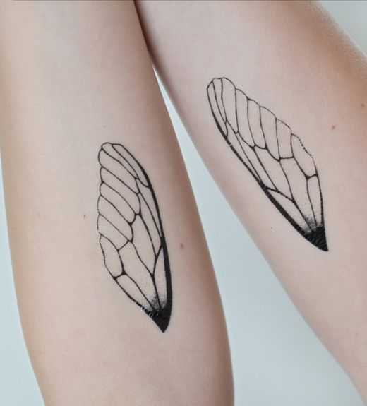 Как правило, конструкция изображения включает два крыла, но бывают и исключения, к примеру, если тату располагается за ухом, на ноге или руке девушки. Для симметрии в таких случаях, татуировки могут наноситься за вторым ухом, либо два крыла на одном запястье.