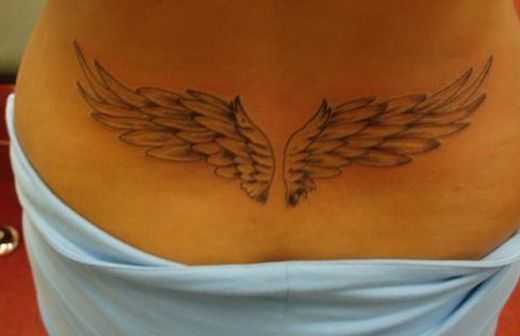 Тату крылья на спине могут быть маленькими, не больше лопаток, а могут растянуться по всей спине до самой талии, включая часть рук.