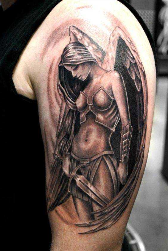 Тату ангелов-воинов олицетворяет охрану. В картинках зачастую главенствует непреодолимая сила и мощь. Они излучают сердечное умиротворение, невинность, потому как добродушно побеждает зло.