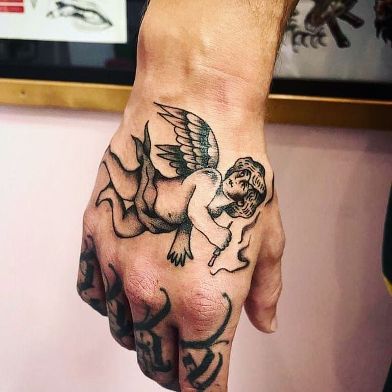 El амур тату это отличный дизайн, в популярной культуре это ангел любви и страсти. Он был создан богами любви и войны.