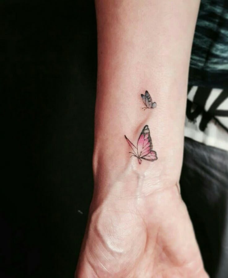 Красочная татуировка на запястье Красивая татуировка бабочка на запястье