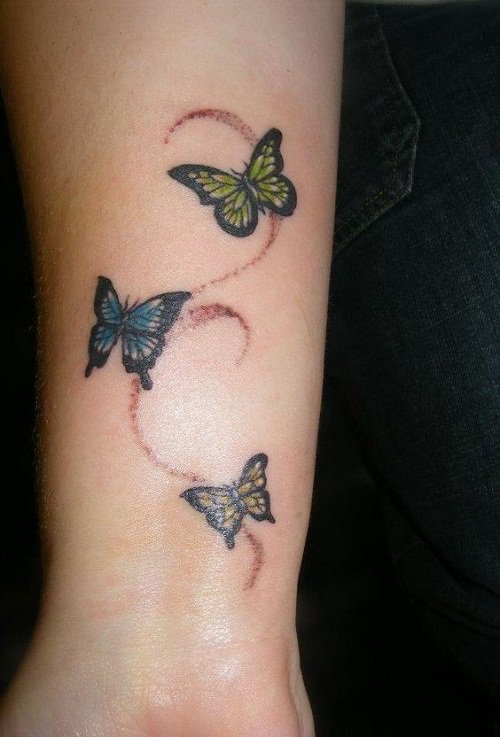 Татуировка бабочки на Востоке символизирует женственность, радость, грацию, а несколько порхающих бабочек – символ семейного счастья.