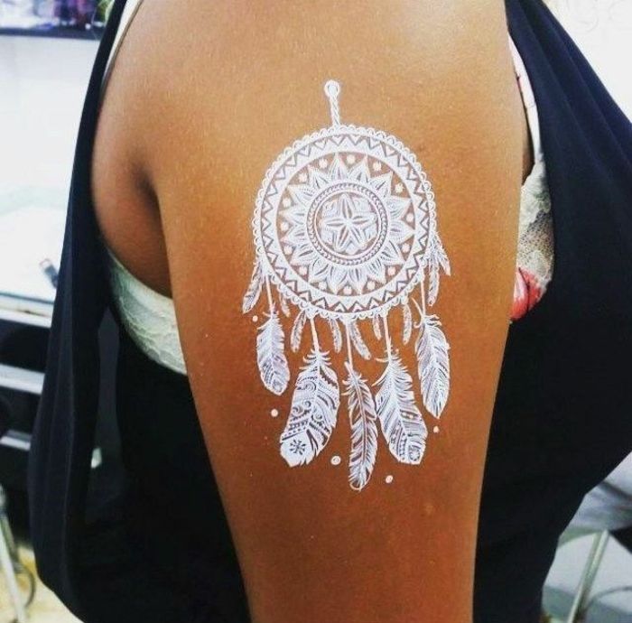 Внешне их даже можно принять за тату хной, потому что цвета получаются натуральными, как при татуировках хной. Но это только с первого взгляда. А вообще, татуировки белыми чернилами чаще всего выглядят более изысканно и тонко, а иногда делаются с эффектом свечения под действием ультрафиолетовых лучей.